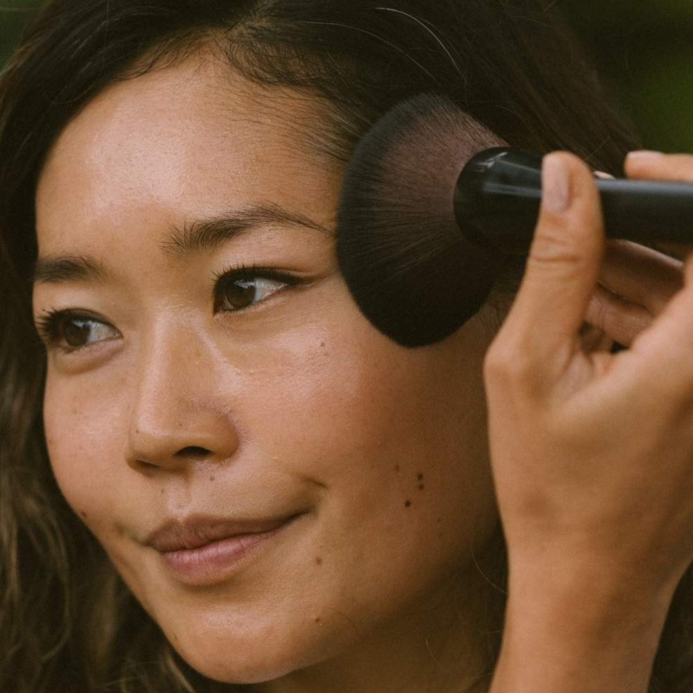 Trage den Bronzer auf Wangen, Augen, Brust und Körper auf, um einen herrlichen bronzenen Schimmer zu erzeugen.