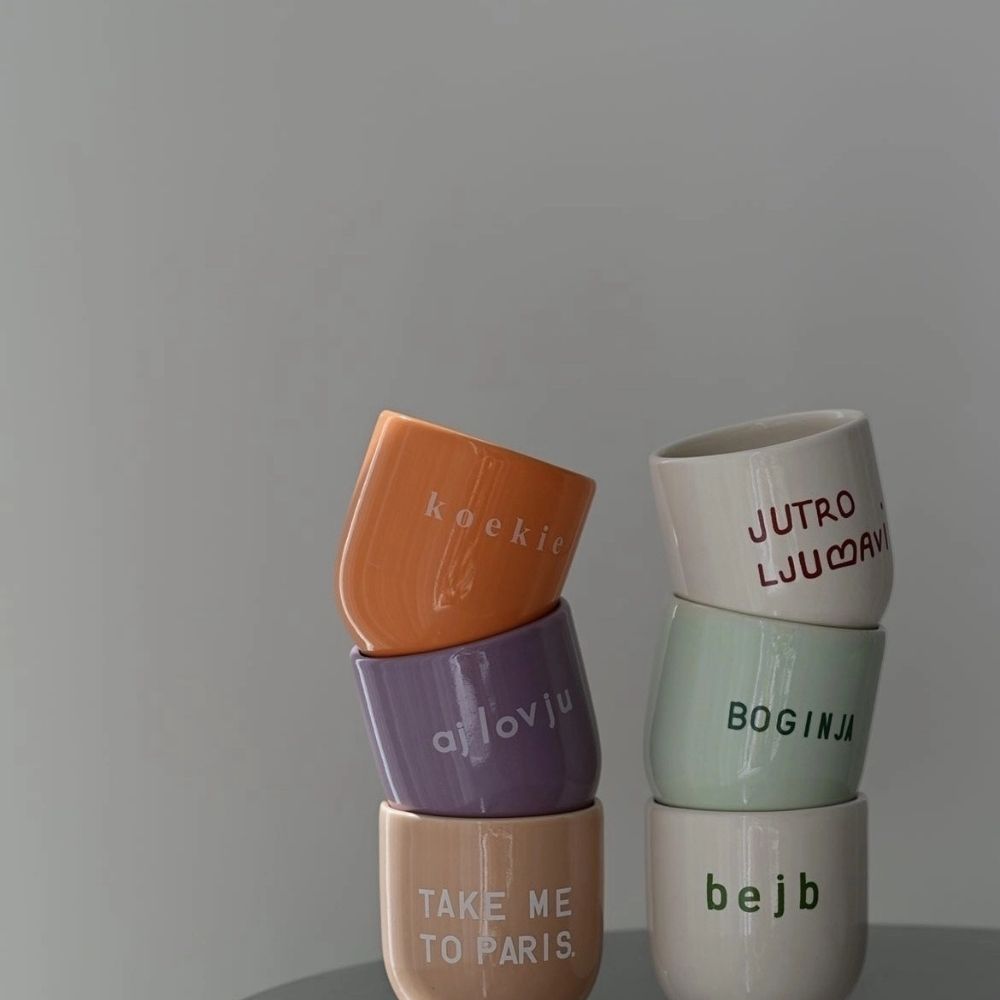 Die „Aj lov ju“ Tasse von Sisi House of Style ist eine glänzende Keramiktasse mit dem Text „Ajlovju“ (Ich liebe dich). Die Tasse ist spülmaschinenfest. Jede einzelne wird handgefertigt und in Farbe getaucht, der Schriftzug von Hand aufgetragen – keine zwei sind genau gleich. Durch den handgefertigten Prozess kann das Gewicht leicht variieren, bis zu 10 %. Denn Liebe lässt sich auf viele Arten ausdrücken.