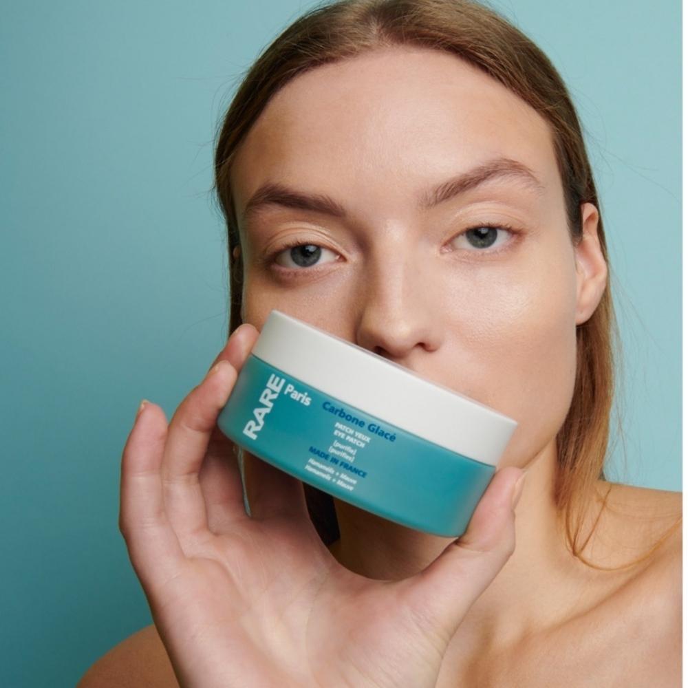Die Carbone Glacée Eye Patches von Rare Paris mit Hamamelis- und Malvenextrakten – Perfekte Pflege für strahlende Augen.
