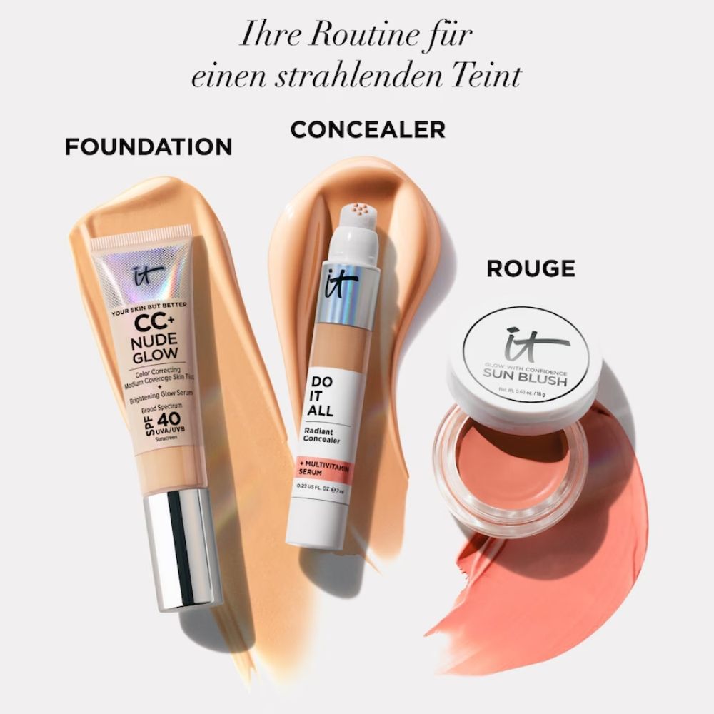 IT Cosmetics vereint hochwertige Hautpflege mit Make-up, um dir strahlende, gepflegte Haut zu verleihen. Entwickelt in Zusammenarbeit mit Dermatologen und plastischen Chirurgen, bieten die Produkte nicht nur perfekte Abdeckung, sondern auch pflegende Eigenschaften für sichtbare Ergebnisse.