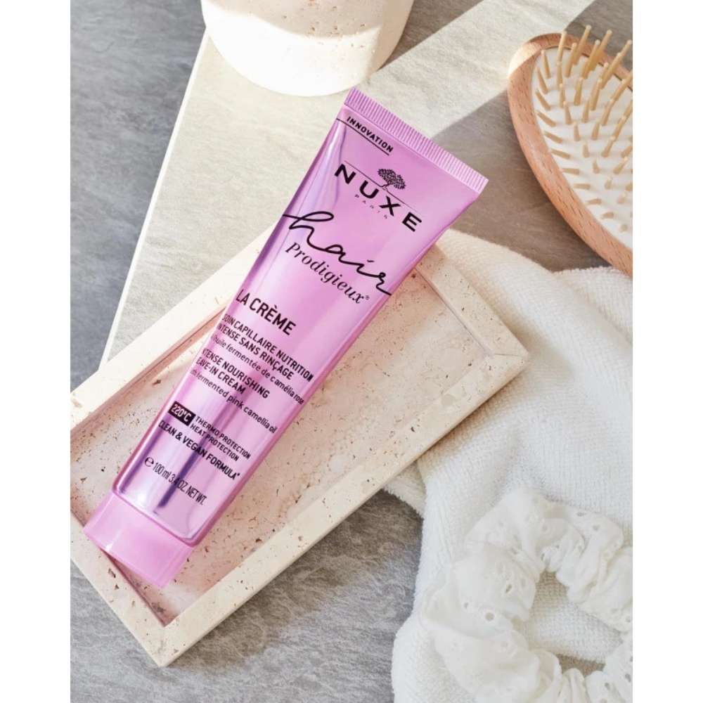 NUXE Hair Prodigieux Intense Nourishing Leave-In Cream ist die perfekte Pflege für trockenes, geschädigtes oder strapaziertes Haar – ohne Ausspülen. Die luxuriöse Formel mit fermentiertem Öl der rosa Kamelie stärkt das Haar intensiv, spendet tiefenwirksame Feuchtigkeit und sorgt für seidig-glänzendes Finish – ganz ohne zu beschweren.
