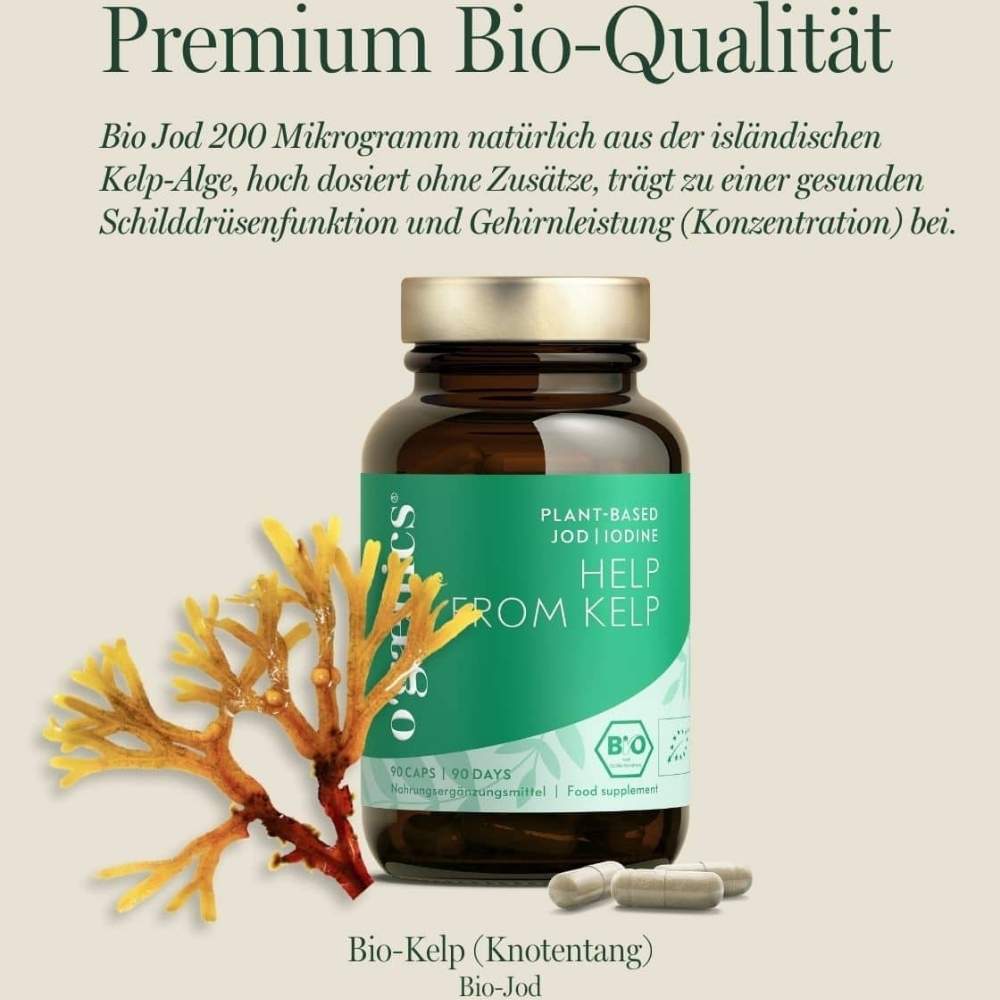 Help from Kelp von Ogaenics ist ein biozertifiziertes Nahrungsergänzungsmittel, das dir reines pflanzliches Jod aus wild geerntetem Bio-Knotentang bietet. Dieses hochwertige Jod wird nachhaltig in den klaren Gewässern Islands geerntet und liefert eine besonders bioverfügbare Quelle, die dein Körper optimal aufnehmen kann.