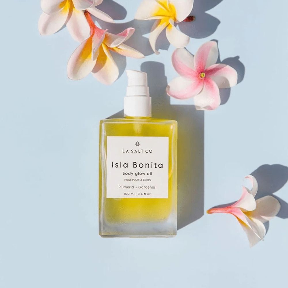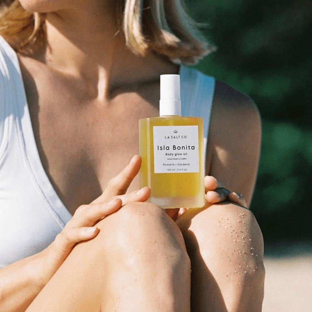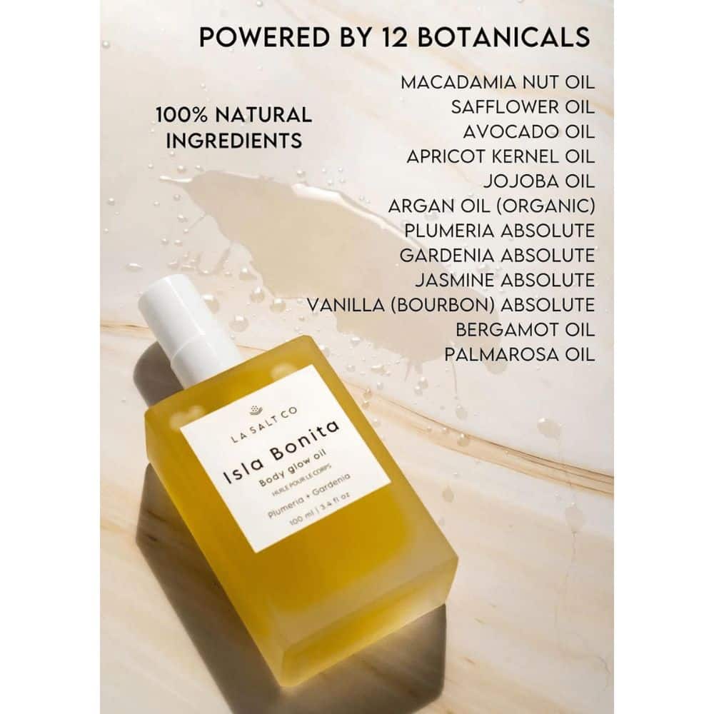 Das Isla Bonita Body Glow Oil von La Salt Co ist ein feuchtigkeitsspendendes Körperöl. Das Öl besteht aus Jojoba-, Macadamia- und Argnöl und macht die Haut geschmeidig weich und schützt die Haut.
