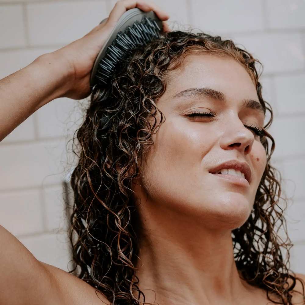 Beim Waschen des Haares eignet sich die Bürste perfekt, um die Kopfhaut sanft zu peelen. Shampoo oder Conditioner ins feuchte Haar geben und gleichmäßig von den Ansätzen bis in die Spitzen einarbeiten. Trockene Haare regelmäßig bürsten, um Haarbruch vorzubeugen und zusätzlichen Glanz zu verleihen. Auch auf trockenem Haar lässt sich die Bürste für eine entspannende oder belebende Kopfhautmassage verwenden. Einmal drücken, um Stress und Anspannung abzubauen, und zweimal drücken, um die Durchblutung zu fördern und die Vitalität zu stärken.