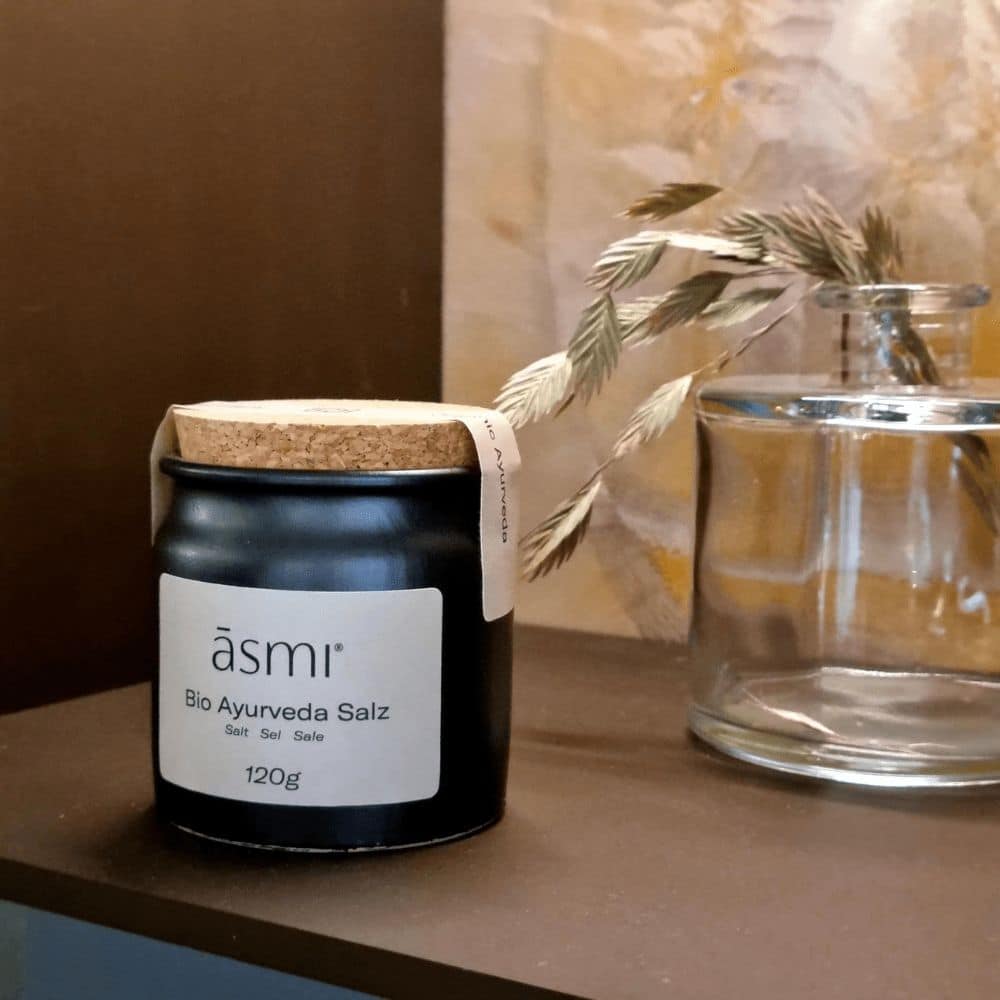 Das Organic Ayurveda Salt von Asmi ist ein 100% natürliches Meersalz aus Italien. Das Salz ist mit handverlesenen Bio-Ayurveda-Kräutern wie Tulsi, Kreuzkümmel und Bockshornklee kombiniert und wird so zum Asmi Kräutersalz.