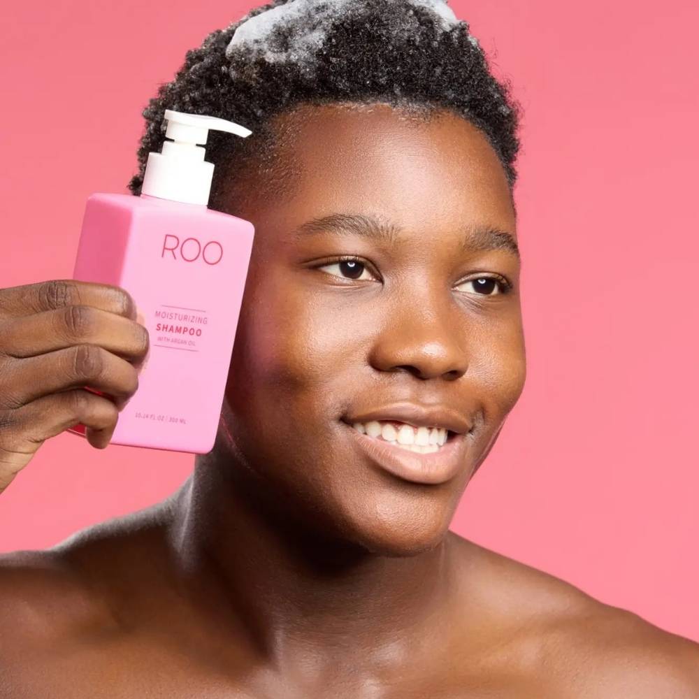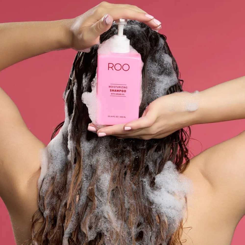 Moisturizing Shampoo von ROO ist ein sanftes, sulfatfreies Shampoo, das gründlich reinigt, ohne Haar oder Kopfhaut auszutrocknen.