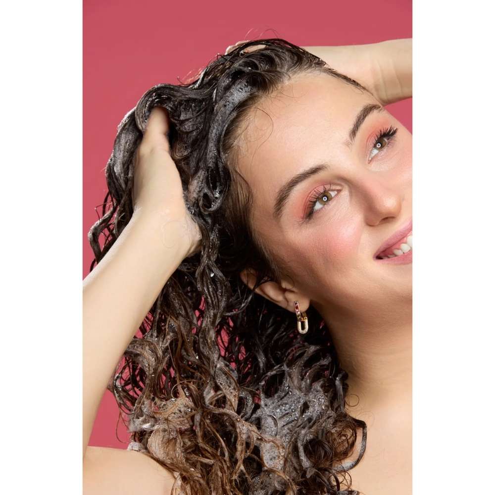 Befeuchte dein Haar mit lauwarmem Wasser. Gib eine kleine Menge Shampoo in deine Hände und massiere es mit den Fingerspitzen in die Kopfhaut ein, bis sich ein reichhaltiger Schaum bildet. Konzentriere dich dabei auf die Kopfhaut, um Ablagerungen zu lösen, und verteile das Shampoo anschließend gleichmäßig in den Längen. Spüle alles gründlich mit lauwarmem Wasser aus, bis das Wasser klar ist. Verwende danach unseren feuchtigkeitsspendenden Conditioner.