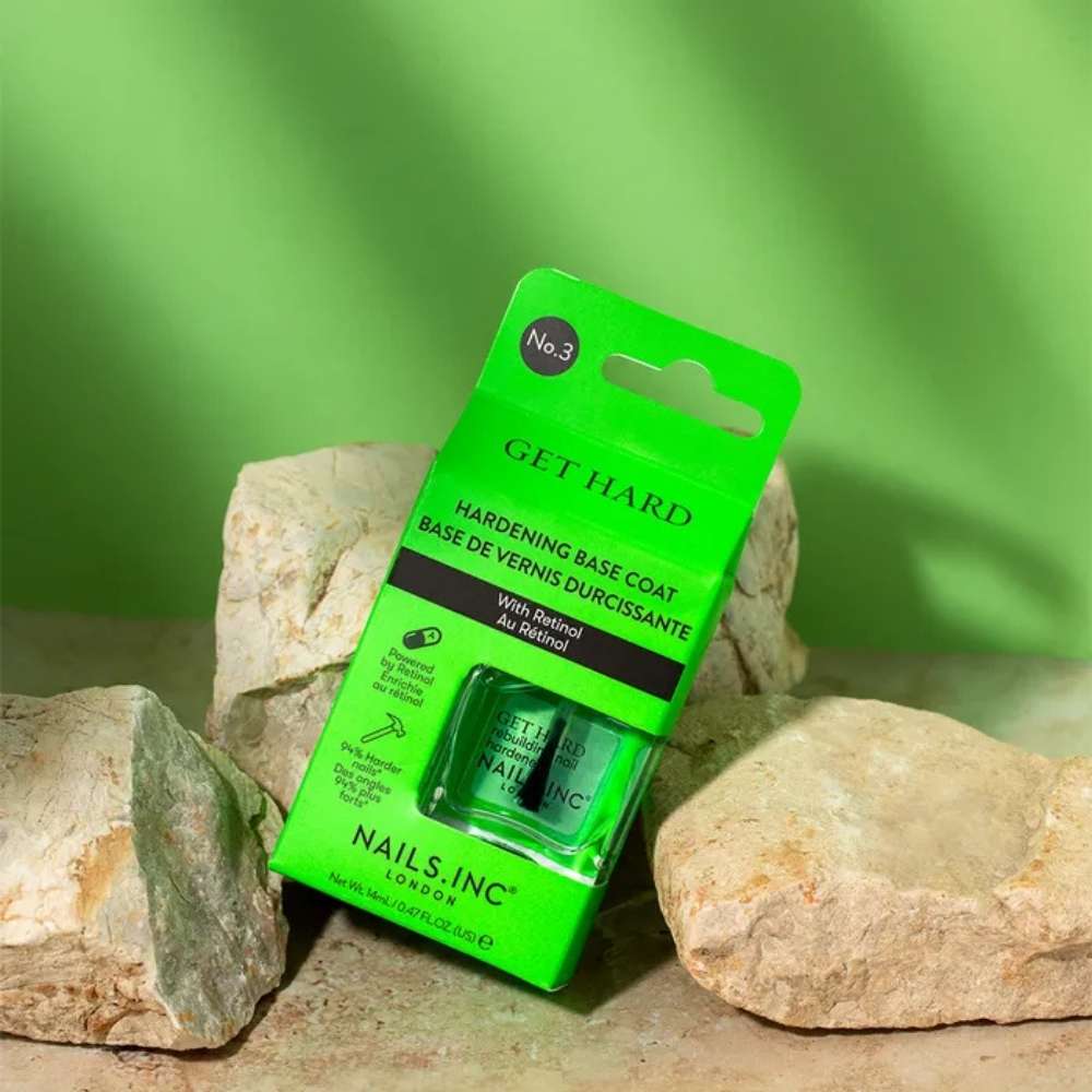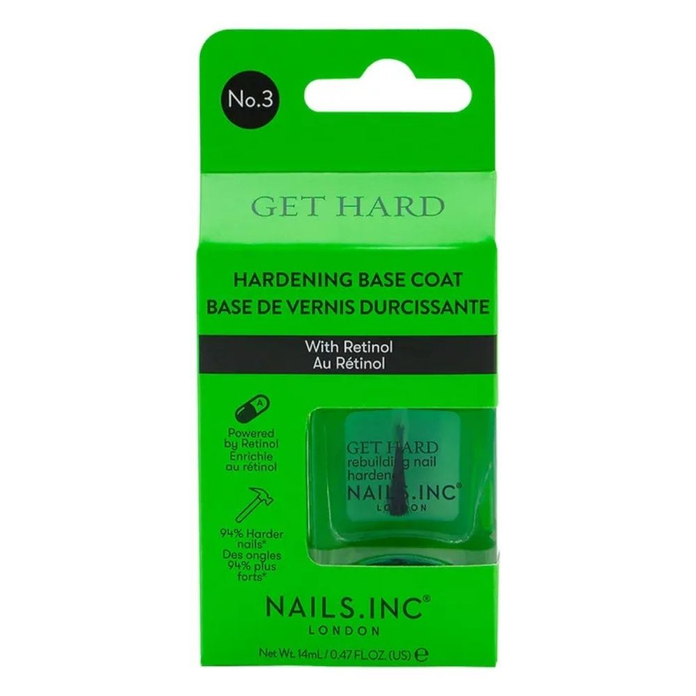 Das NAILS.INC Treatment Get Hard ist ein leistungsstarker stärkender Unterlack, der den Nägeln in nur zwei Wochen sichtbar mehr Festigkeit, Schutz und Glätte verleiht. Die innovative Formel kombiniert Retinol, Grünkohl, Spinat und Pilzextrakte – echte Superfoods für die Nägel – und wirkt wie eine schutzverstärkende Kur für schwache, rissige oder spröde Nägel.