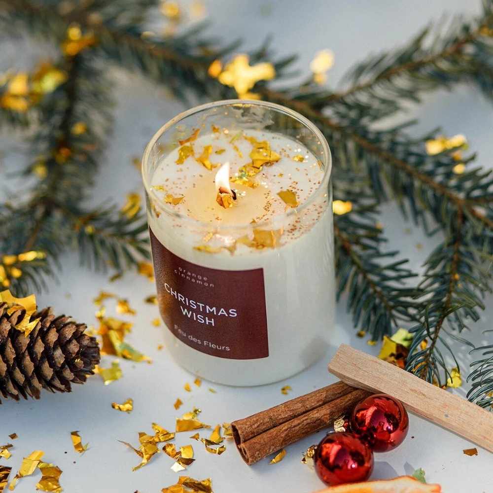 Nichts weckt so viele Erinnerungen an frostige Dezembertage wie der Duft der Christmas Wish Kerze von Feu des Fleurs.