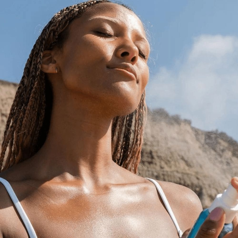 Die wasserfeste Formel macht ihn ideal für aktive Tage am Strand, beim Sport oder unterwegs. Dank seiner ultraleichten Textur lässt sich der Spray mühelos über dein Make-up oder direkt auf die gereinigte Haut auftragen – ganz ohne zu fetten oder Rückstände zu hinterlassen.