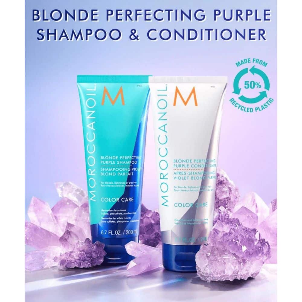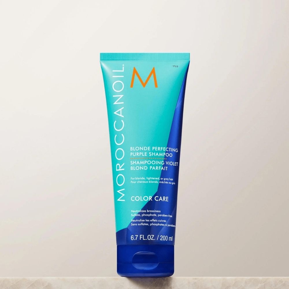 The Blonde Perfecting Shampoo from Moroccanoil neutralises the brassy tone in blonde, lightened brown and grey hair.