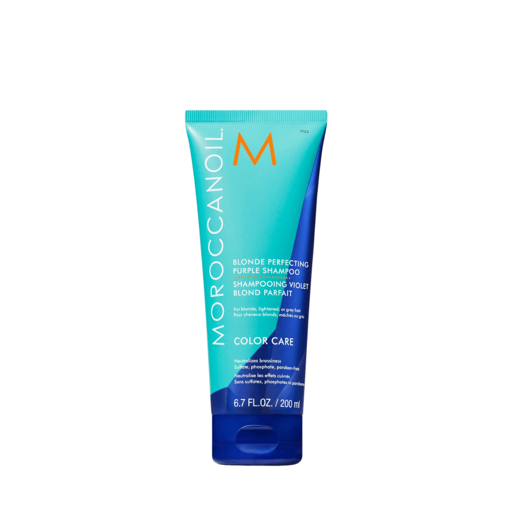 The Blonde Perfecting Shampoo from Moroccanoil neutralises the brassiness in blonde, lightened brown and grey hair. The shampoo has been specially developed to provide the best hair care for blonde hair and the best hair care for grey hair. The shampoo contains deep purple pigments that combat unwanted yellow and orange tones, helping to maintain your ideal hair colour between hairdressing appointments. The gentle, non-drying formula is ideal for dry hair care and provides optimal hair care for coloured and dyed hair. Enriched with ArganID™, the shampoo repairs the hair from the inside out and provides excellent care for blonde and bleached hair. This colour-safe shampoo is free from sulphates, phosphates and parabens and offers good hair care for bleached hair.