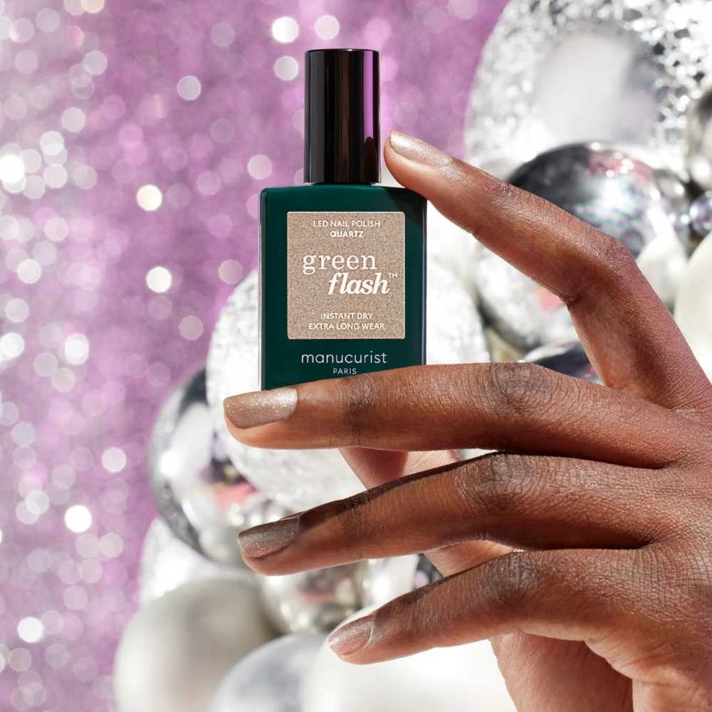 The Green Flash Nail Polish Quartz from Manucurist is a beautiful nail polish in shimmering sequin brown. Green Flash is the first eco-friendly gel nail polish range that can be removed like regular nail polish but with an LED finish. The polishes are largely made from sugar cane, manjok, cotton, corn, bamboo extract, wheat and sunflower oil. The formulation is 57.5% organic and lasts up to 10 days. To use a Green Flash polish, you need a base coat, a Green Flash polish, a top coat and an LED lamp with a minimum output of 18W.