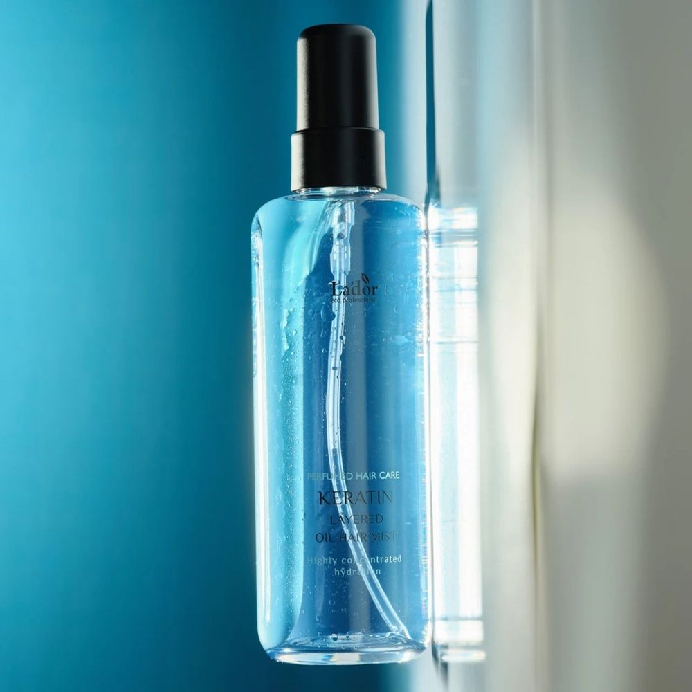 The innovative Keratin Layered Oil Mist from Lador combines a protective oil layer with a moisturising layer. Enriched with keratin, five types of hyaluronic acid and high-quality oils, it has been developed to protect the hair and restore it to its natural state. Keratin fills damaged areas in the hair structure, binds split ends, strengthens the hair and gives it extra strength. The five types of hyaluronic acid provide intensive moisture and help to retain it in the hair. High-quality oils nourish the hair and give it shine. The Oil Mist rebuilds the damaged hair structure and prevents dehydration. It makes the hair elastic and resistant to external influences, provides it with important nutrients and preserves the shine of the hair colour, making the hair look healthy. It also makes combing and styling easier.