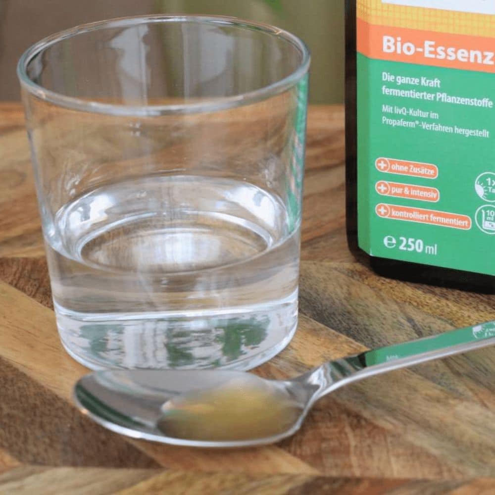 It is recommended to take Bio-Essence before a meal (7-10ml once a day) or before going to bed. Feel the tingling sensation in your mouth, as absorption begins via the oral mucosa. Drink livQ Bio-Essenz regularly.