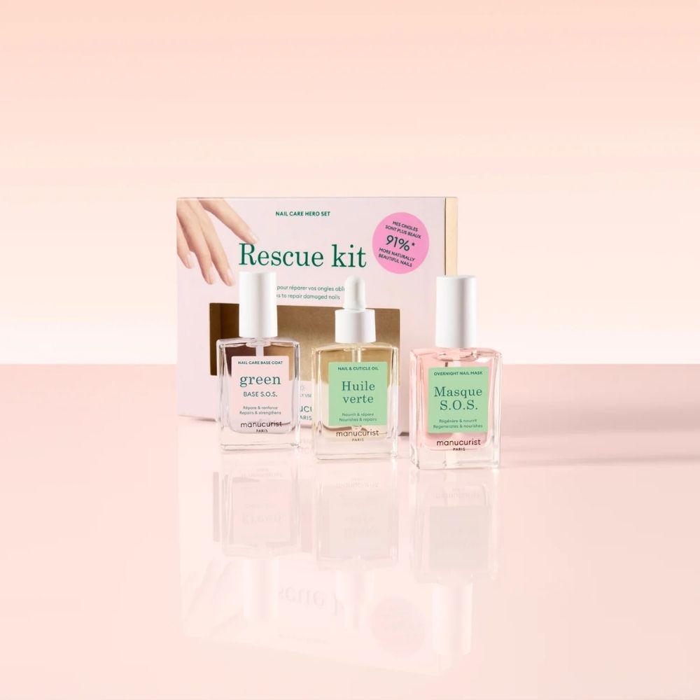 Discover the ultimate nail care routine for damaged and stressed nails with the Nail Rescue Kit from Manucurist. Frequent use of classic gel nail polish and overworked hands can damage the nail plate. The bestselling trio provides you with an effective solution to repair and regenerate your nails. After just two weeks of intensive nail care, you will achieve healthy, strong nails before switching to the innovative Green Flash nail polish. Give your nails the care they deserve and get them back in top shape quickly!