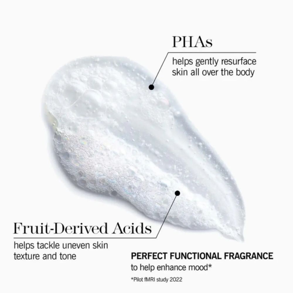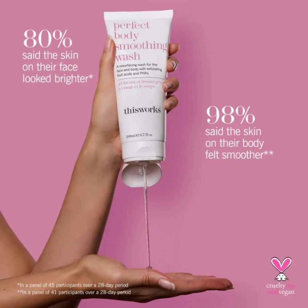 The Perfect Body Smoothing Wash from This Works is a skin-regenerating cleanser for face and body that combines fruit acids and PHAs to gently but effectively exfoliate the skin. After just 7 days of use, it provides a brighter, smoother and more refined complexion*.