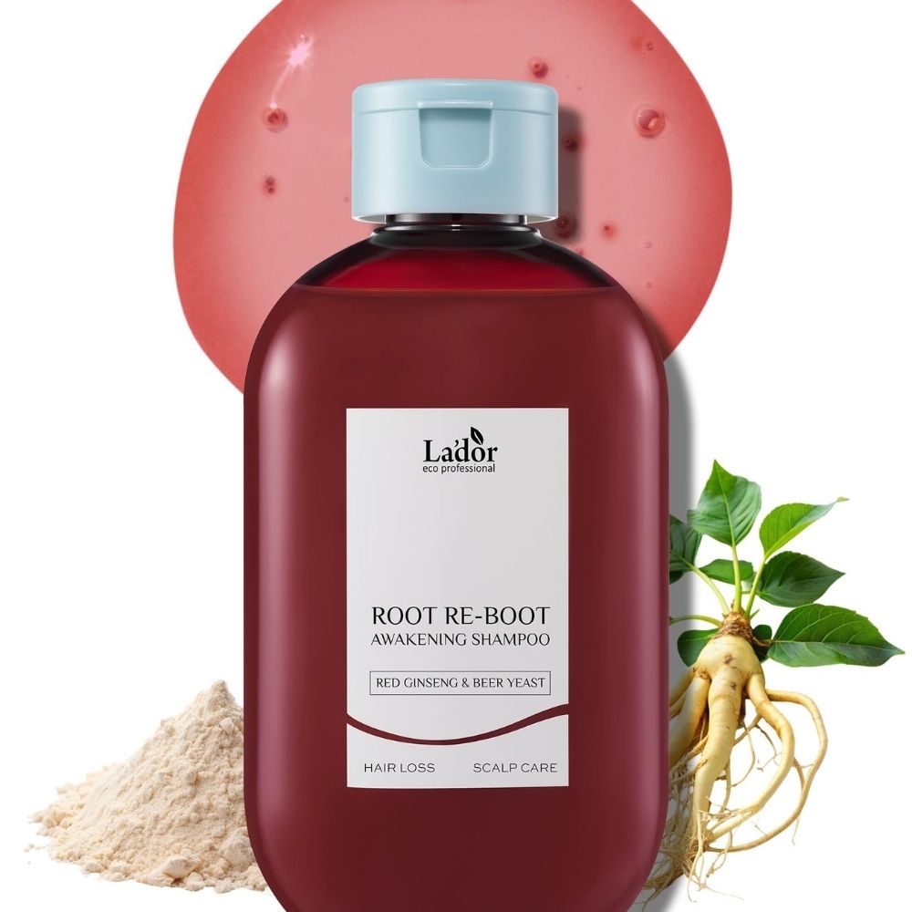 The Lador Root Re-Boot Awakening Shampoo (Red Ginseng & Beer) is a refreshing conditioning shampoo specially developed to prevent hair loss and thoroughly cleanse the scalp. Enriched with red ginseng root extract and brewer's yeast, it gives the hair shine and suppleness.