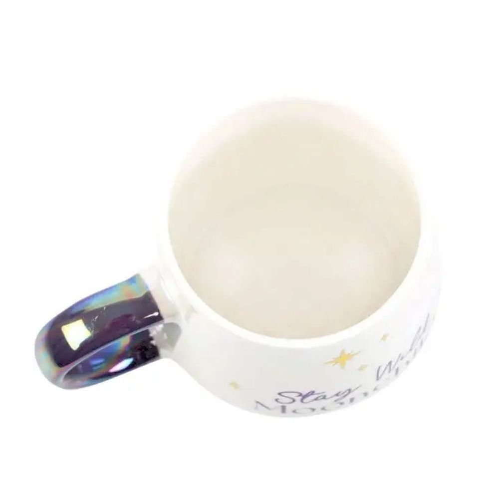 Boost positive energy with this Stay Wild Moon Child ceramic mug. The opalescent shimmer of the mug is accentuated by the golden "Stay Wild Moon Child" design and the purple handle. The saying celebrates the free spirit and makes the mug an ideal gift for everyone. The rounded shape ensures comfortable handling and the generous 500 ml capacity offers plenty of space. Microwave safe.