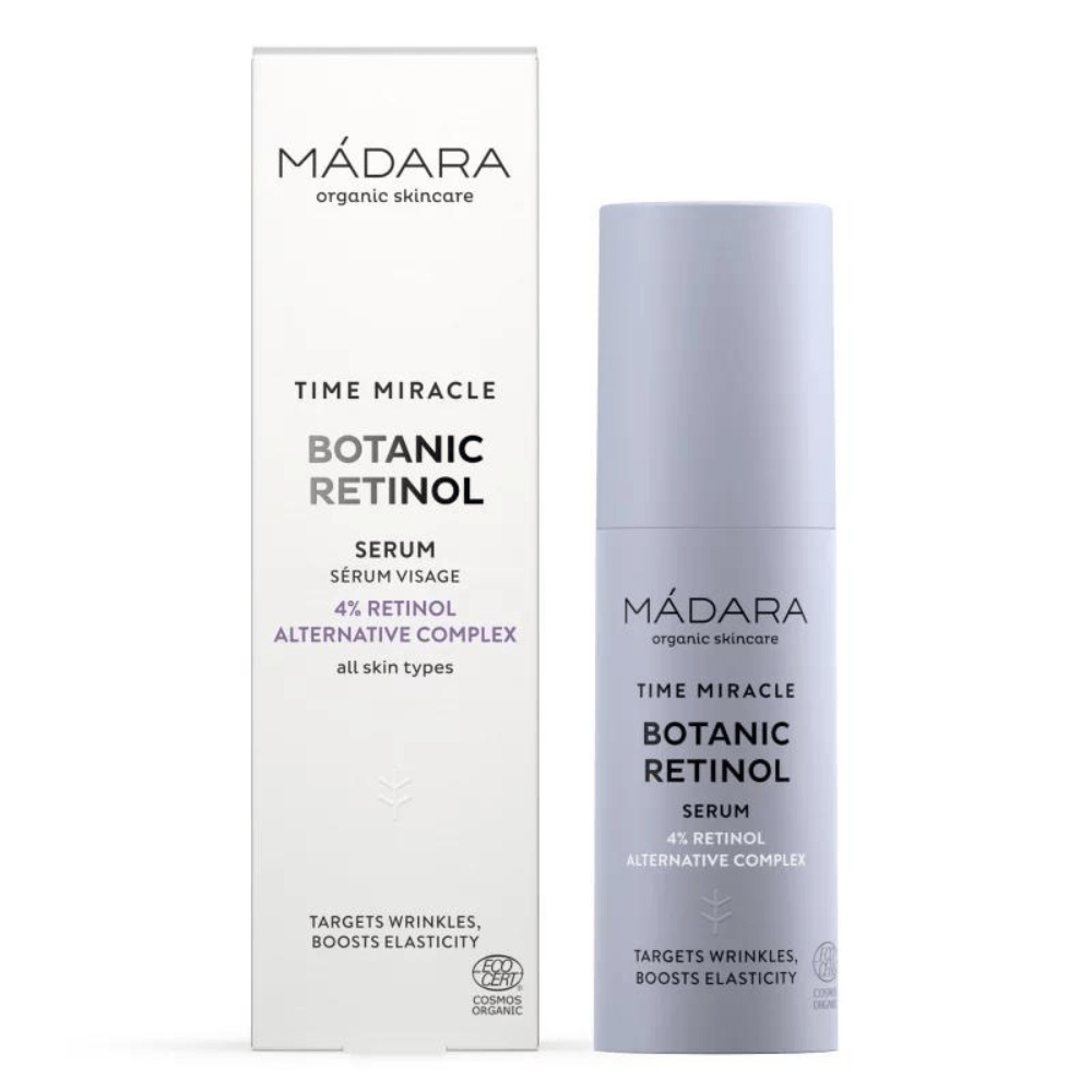 The Time Miracle Botanic Retinol Serum from Madara stimulates collagen production and restores your skin's elasticity. Fine lines and wrinkles are minimised and you get visibly smoother and firmer skin. The serum contains an alternative, plant-based 4% retinol complex that works perfectly against signs of premature skin ageing.