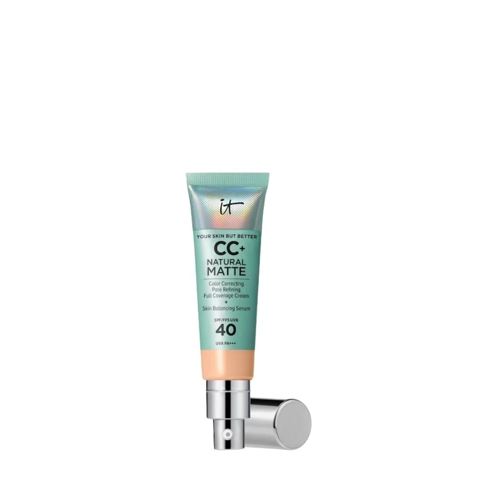 The Your Skin But Better CC+ Cream Natural Matte Foundation SPF40 from It Cosmetics not only reduces shine and covers imperfections, but also nourishes the skin with valuable serums and offers SPF 40 sun protection.