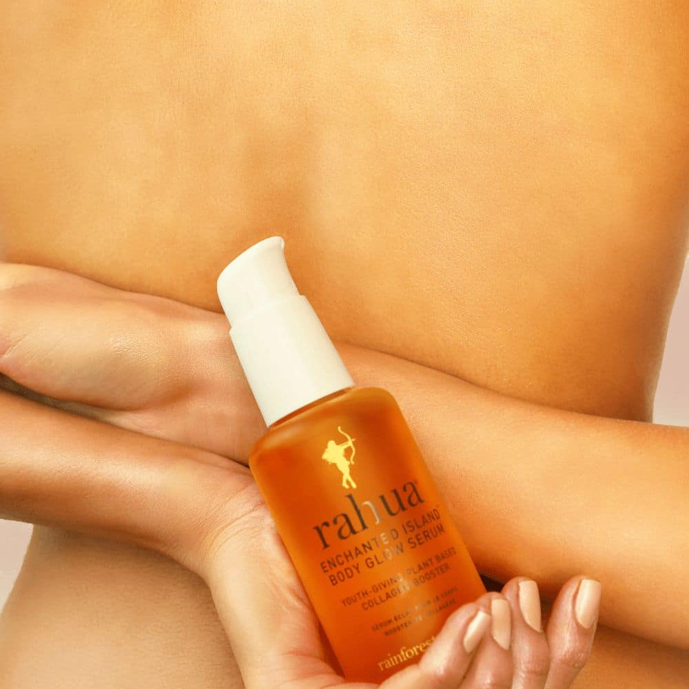 Das Enchanted Island Body Glow Serum von Rahua versorgt deine Haut mit den nötigen Nährstoffen und Förster die Gesundheit. Die Vitalität der Haut wird wieder hergestellt und das Serum verleiht dir ein strahlendes Aussehen. Dieses beruhigende Öl-Serum wurde speziell mit leistungsstarken pflanzlichen Inhaltsstoffen hergestellt. Es ist schützend, jugendlich und aufbauend und hilft Ihnen, eine glatte, weiche, hydratisierte, gut getönte und wunderschöne Haut zu erhalten, die strahlt. Dieses Serum enthält einen kollagenfördernden Schachtelhalmextrakt, der die Hautregeneration unterstützt, und seine wirksamen Antioxidantien bieten Anti-Aging- und entzündungshemmende Vorteile. Hyaluronsäure auf pflanzlicher Basis schließt Feuchtigkeit ein und polstert die Haut auf. Guayusa-Extrakt aus dem Amazonasgebiet und starke Antioxidantien liefern lebenswichtige Nährstoffe und fördern die konstante Pflege und den Schutz der Haut. Echiote-Extrakt aus dem Regenwald schützt die Haut vor und nach der Sonneneinstrahlung, beruhigt die Haut und sorgt für ein glatteres Hautbild. Ebenso wird das Erscheinungsbild von Cellulite und Dehnungsstreifen minimiert.