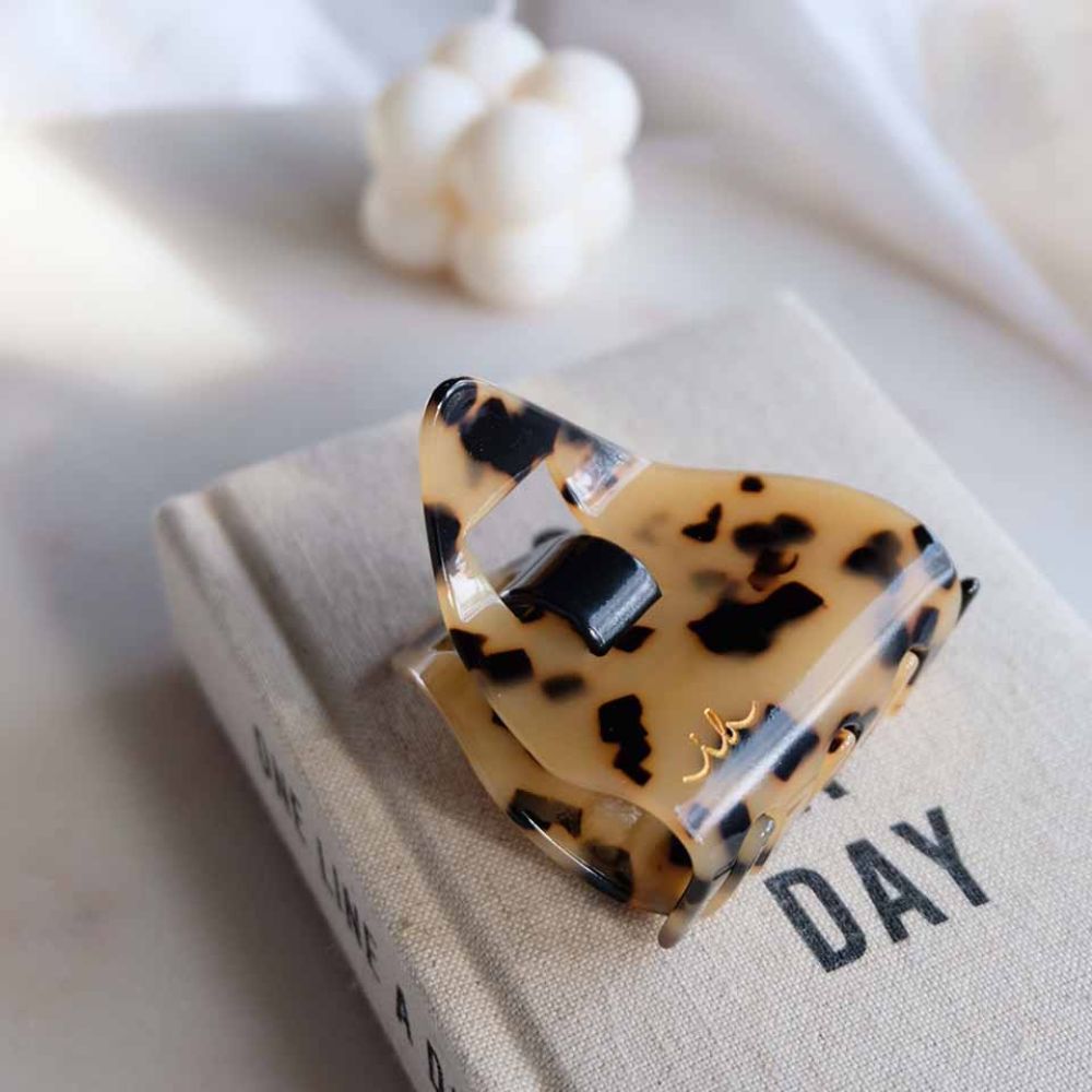 Die brandneue EVERCLAW Leo Love Haarklammer von invisibobble ist eine äußerst stylische Haarspange von höchster Qualität. Gefertigt aus strapazierfähigem und nahezu "unzerbrechlichem" Acetatmaterial, bietet die EVERCLAW eine außergewöhnliche Lebensdauer. Besonders hervorzuheben ist, dass die EVERCLAW 100% metallfrei und haarschonend ist, dank der innovativen Polyspring-Technologie. Ihre einzigartige Form und das dezente Leopardenmuster machen sie zu einem echten Blickfang, der zu allen Haarfarben, -typen und -stilen passt. Gleichzeitig gewährleistet sie einen hohen Tragekomfort.