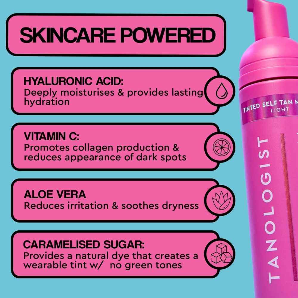 Das Express Tinted Self-Tan Mousse von Tanologist liefert sofortige, hydratisierte und streifenfreie Bräune, die sich innerhalb weniger Minuten entwickelt und in den folgenden Stunden zu einer tiefen, dunklen Bräune heranreift. Die tragbare, getönte Führungsfarbe ermöglicht ein präzises, makelloses Auftragen, ideal für Anfänger und erfahrene Bräuner.