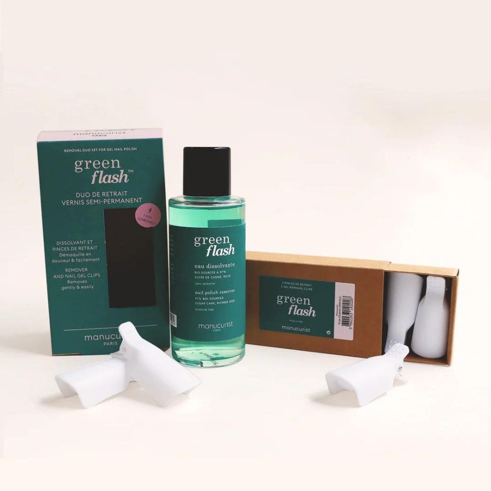 Mit dem Green Flash Nail Polish Remover & Removal Clips Duo von Manucurist wird das Entfernen von Nagellack einfach, schnell und schonend – ideal für gepflegte Nägel ohne Aufwand.