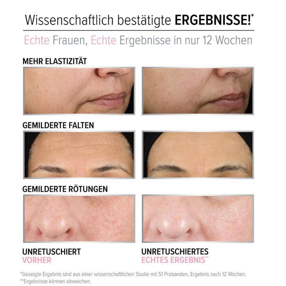 Wissenschaftlich bestätigte Ergebnisse ab dem ersten Tag der Anwendung. Nach 12 Wochen sind deutliche Verbesserungen sichtbar. Die Creme ist für alle Hauttypen geeignet, einschließlich empfindlicher Haut.