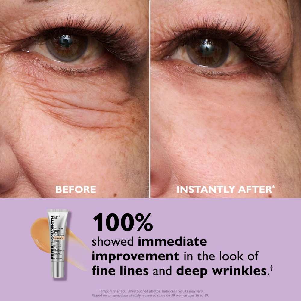 Die transparente, getönte Textur passt sich jedem Hautton an, neutralisiert Weißstich und lässt sich perfekt unter Make-up verwenden – ohne zu pillen. Firm-A-Tite™, eine kraftvolle Mischung aus hautstraffenden Silikaten und Algenextrakt, sorgt für sofortige Glättung und Festigkeit. Die fortschrittliche Peptid-Technologie wirkt bei regelmäßiger Anwendung gegen Tränensäcke, Elastizitätsverlust und weitere Anzeichen der Augenalterung – für sichtbare Sofort- und Langzeitergebnisse.