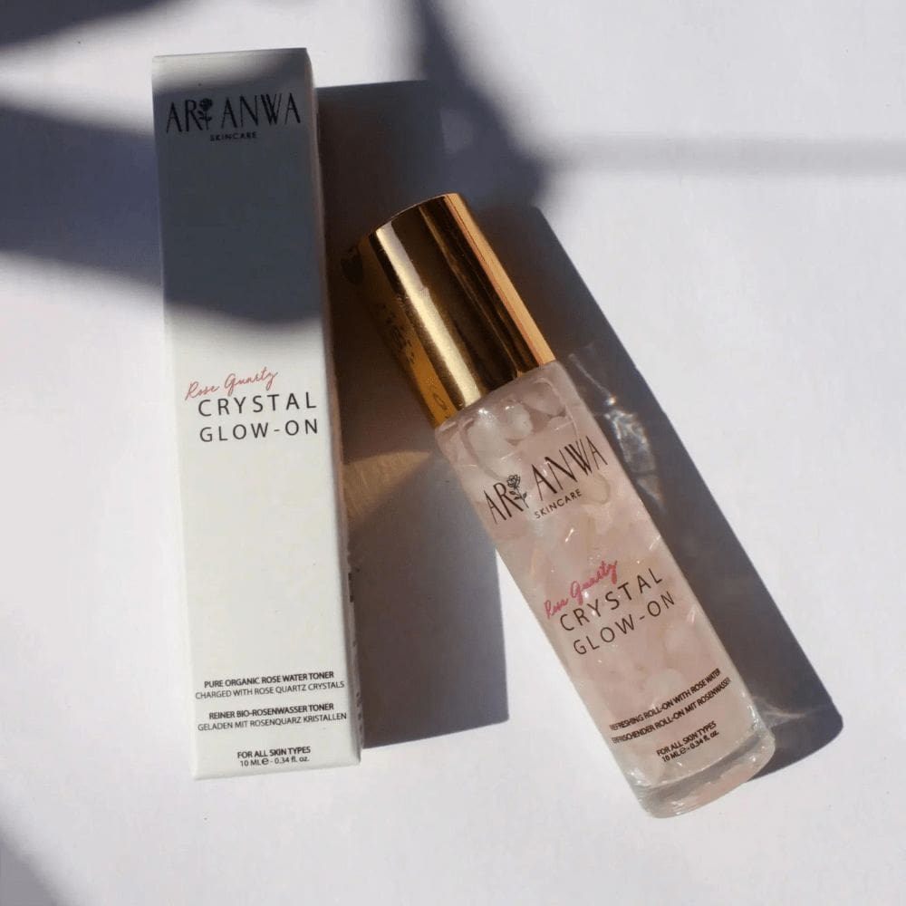 Der Rosenwasser Roll-On mit kühlender Rosenquarzkugel von Ari Anwa ist vollgeladen mit echten Rosenquarz-Kristallen und gefüllt mit dem hochwertigen Bio Rosenwasser.
