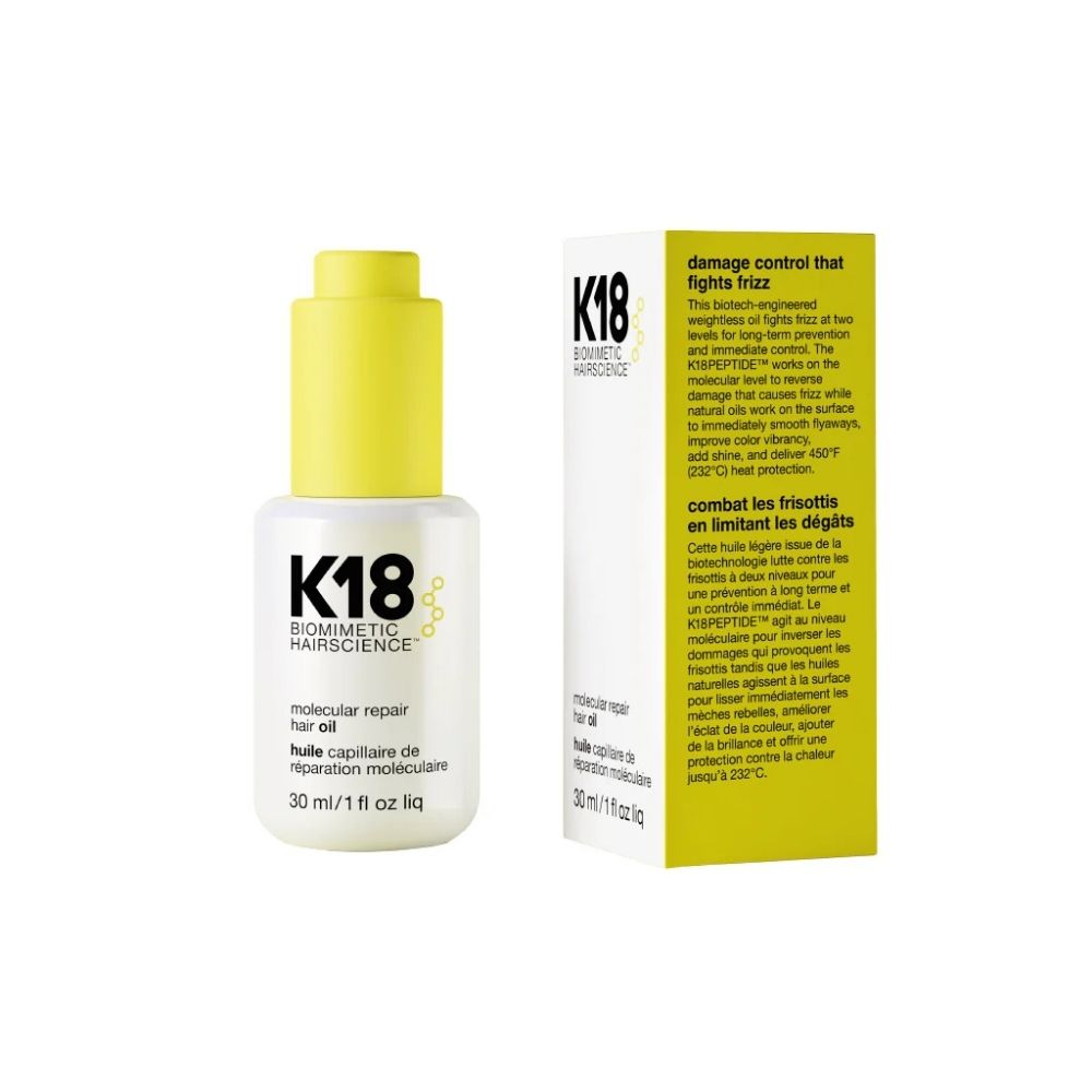 Sag Frizz, Trockenheit und Haarschäden endgültig den Kampf an – mit dem Molecular Repair Hair Oil von K18. Dieses ultraleichte, silikonfreie Haaröl wurde entwickelt, um dein Haar auf molekularer Ebene zu reparieren, Frizz nachhaltig zu reduzieren und die Haarstruktur zu stärken – ohne es zu beschweren.