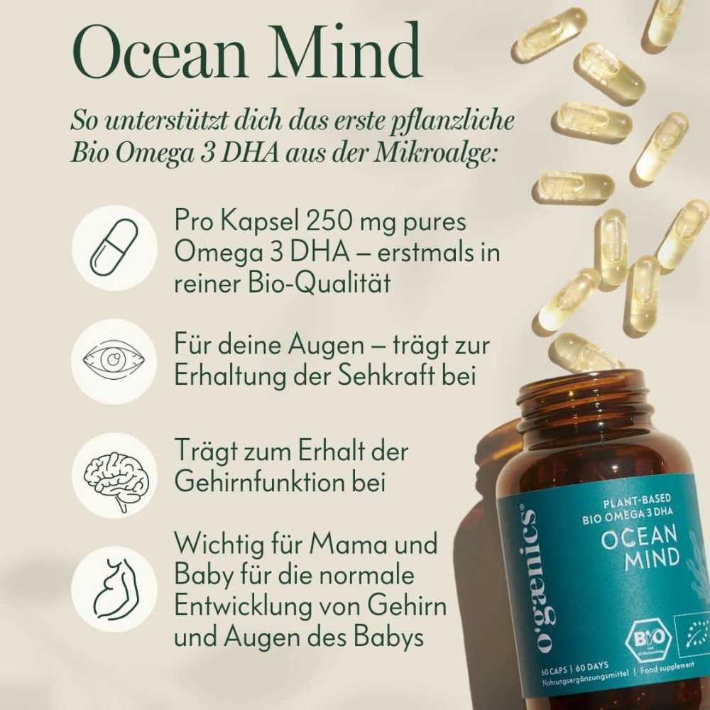 Ogaenics Ocean Mind – Pflanzliches Bio-Omega-3 DHA für Gehirn & Sehkraft.