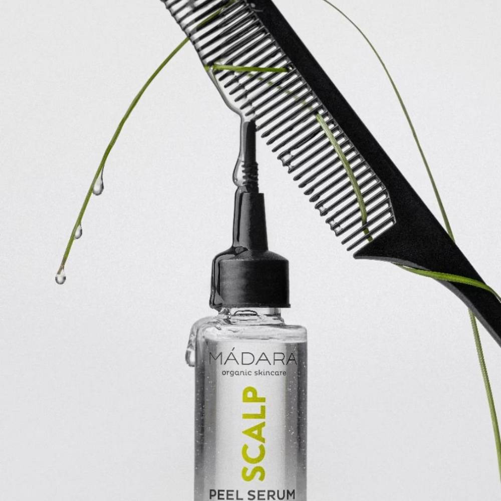 Üppiges Haar beginnt mit einer gesunden Kopfhaut – verwöhne sie mit diesem limitierten natürlichen Scalp Peel Serum von Madara. Das Kopfhaut-Peelingserum mit Milch- und Hyaluronsäure sorgt für ein gründliches Peeling, das die Kopfhaut effektiv reinigt und abgestorbene Hautzellen, Produktrückstände, überschüssigen Talg sowie Schmutz entfernt. Die duftfreie Formel bietet ein sanftes Peeling, belebt die Kopfhaut, lindert unangenehme Gefühle und schafft ein gesundes Milieu für schönes Haar. Geeignet für alle Haartypen.