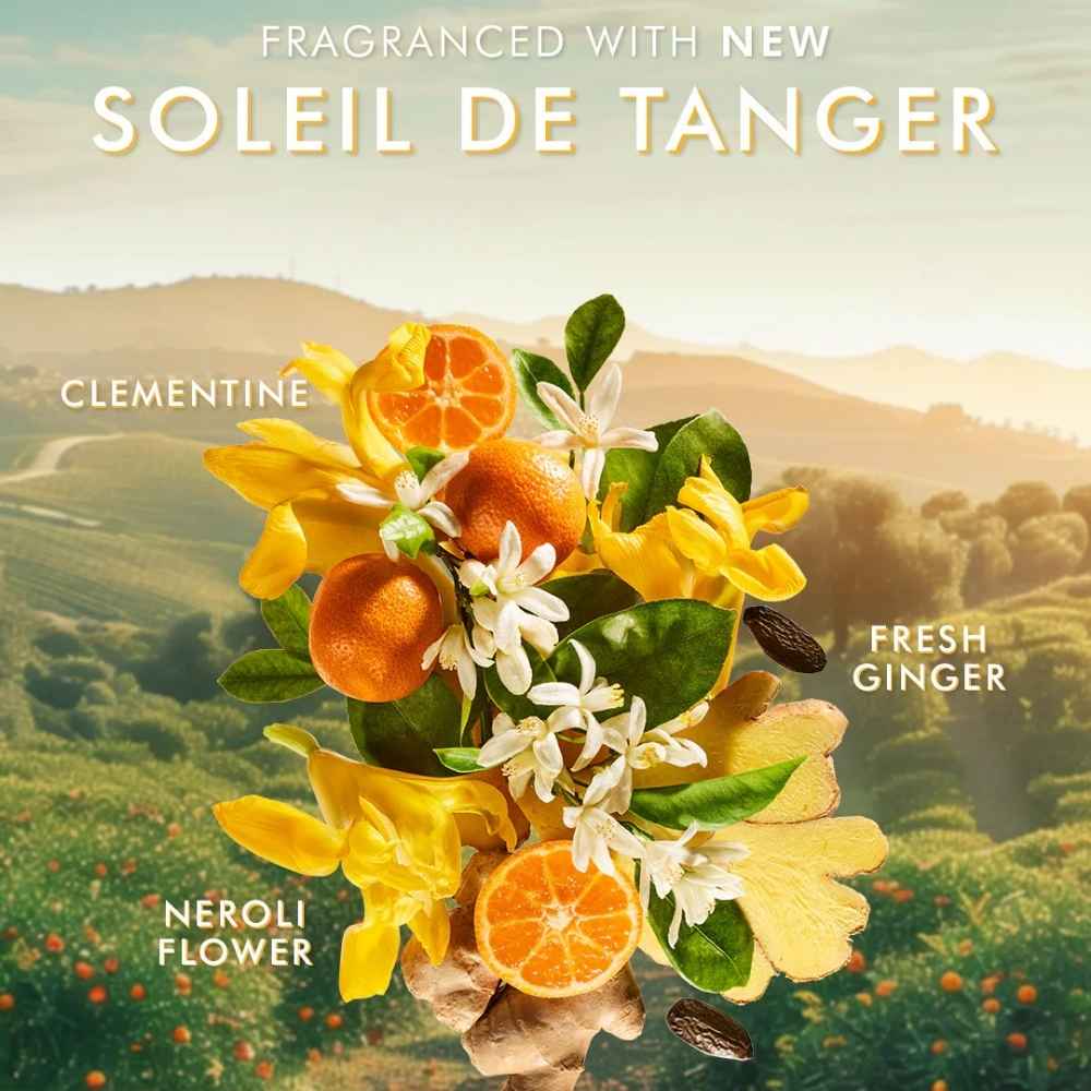 - Prickelnder Duft – Soleil de Tanger: Sonnenverwöhnte Clementine, frischer Ingwer, Neroliblüte und Tonkabohne für ein frisches, belebendes Duscherlebnis.