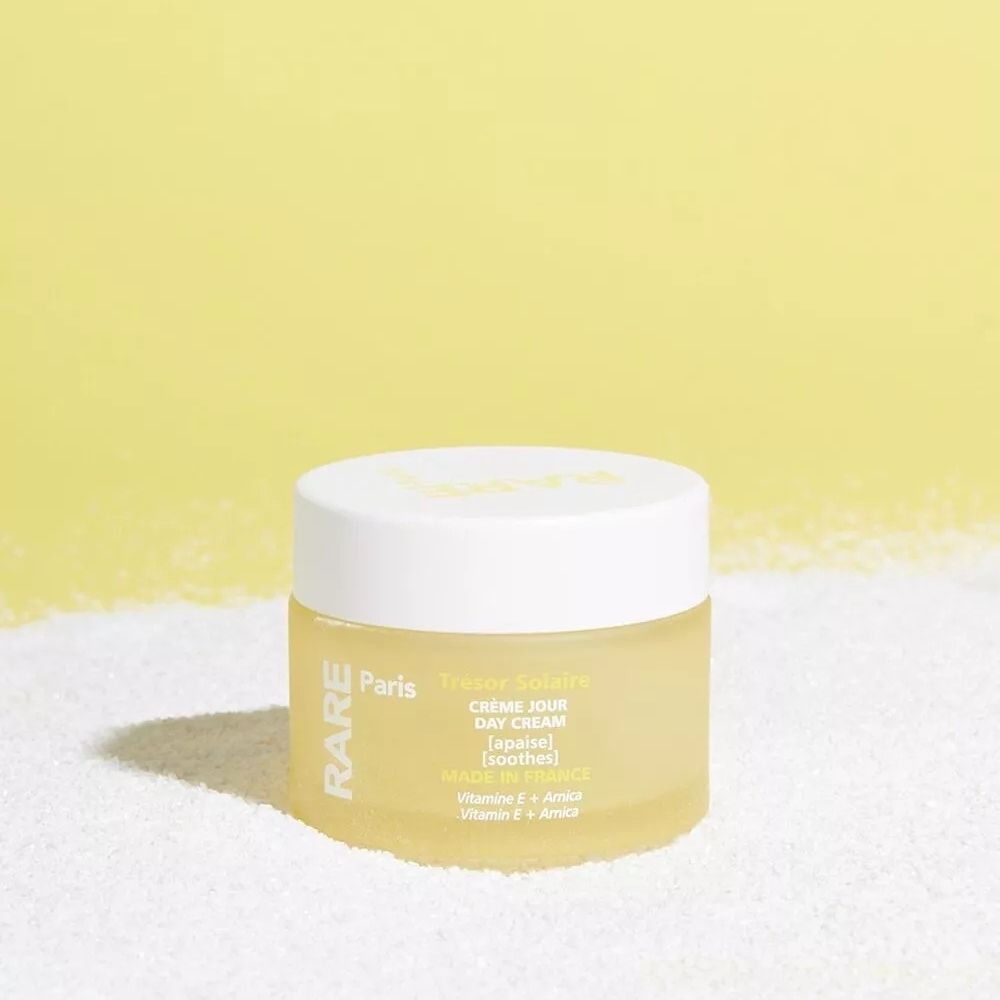 Die Trésor Solaire Day Cream von Rare Paris ist die ideale Tagespflege für empfindliche und gestresste Haut. Mit einer beruhigenden, multiaktiven Formel aus Vitamin E, Arnika, Magnolie und Silberweide stärkt sie die Hautbarriere, lindert Rötungen und schenkt ein entspanntes Hautgefühl – den ganzen Tag.