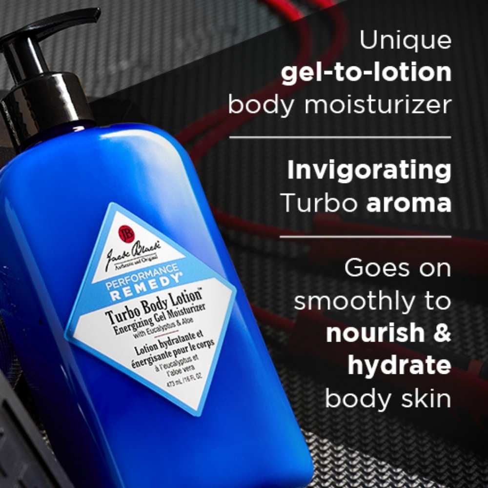 Diese außergewöhnliche Turbo Body Lotion Energizing Gel Moisturizer von Jack Black verwandelt sich von einem Gel in eine Lotion und enthält das beliebte Turbo-Aroma von Jack Black. Die leichte, schnell einziehende Formel lässt sich mühelos auftragen und versorgt die Haut intensiv mit Feuchtigkeit und Nährstoffen. Rosmarinextrakt und Eukalyptus beleben die Sinne, während sie die Haut kühlen und erfrischen. Kaktusfeigenkernöl und Aloe sorgen für eine schnell einziehende und frische Feuchtigkeitspflege. Ideal nach dem Duschen oder wenn die Haut zusätzlich Feuchtigkeit benötigt.